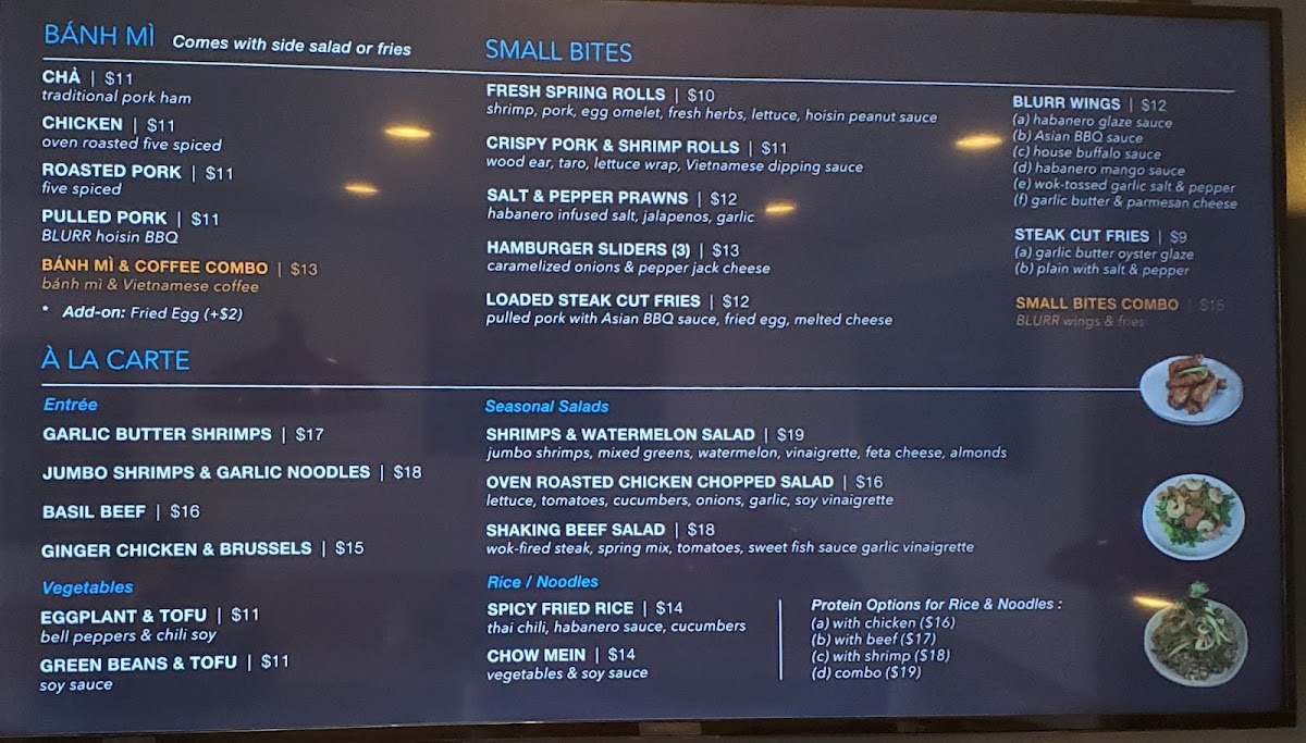 If you're in the mood for some hearty sides, don't overlook the Garlic Fries—thick-cut and fried to golden perfection, these are generously coated in a sweet garlic sauce that leaves you craving more. And for those who relish a bit of spice, the Blurr Wings at just $10 and the Spicy Fried Rice ($17) are sure to satisfy your cravings.